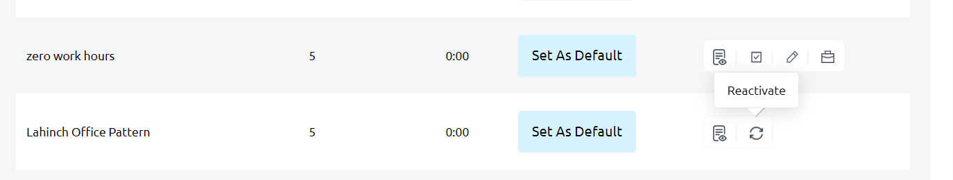 In other instances, archived documents may not have a dedicated tab. Instead, they are displayed on the same screen as active items, but are simply relocated to the bottom of the list. This is the case in sections like work patterns, where archived items remain visible, yet are clearly segregated from current tasks.