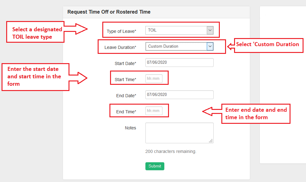 Employees will now be able to book TOIL by the hour when choosing Custom Duration