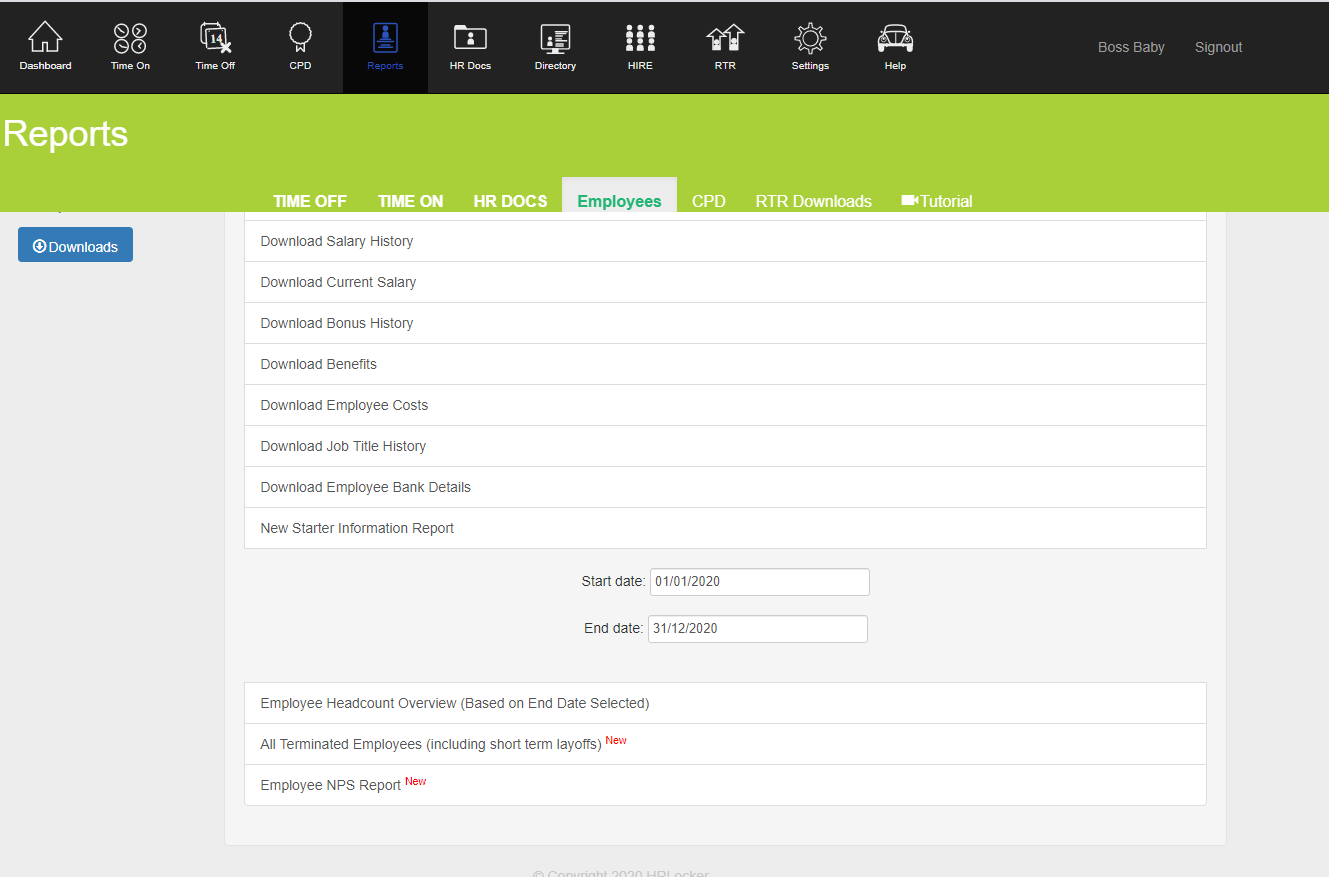 The NPS scores can also be downloaded in a report in the Employee area of the reports section.