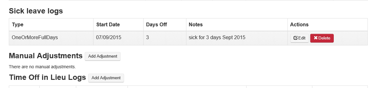 - This will display a log of all manual adjustments made during the current leave year.On the employee’s Time Off page, select Manual Adjustments log.