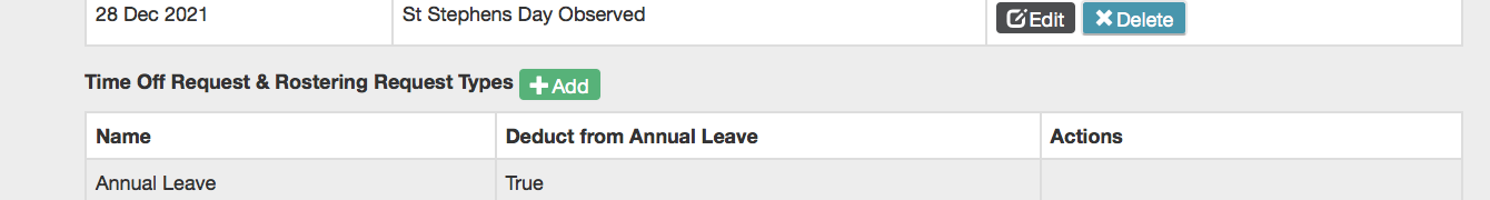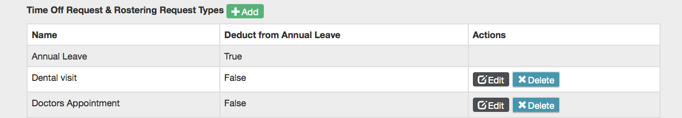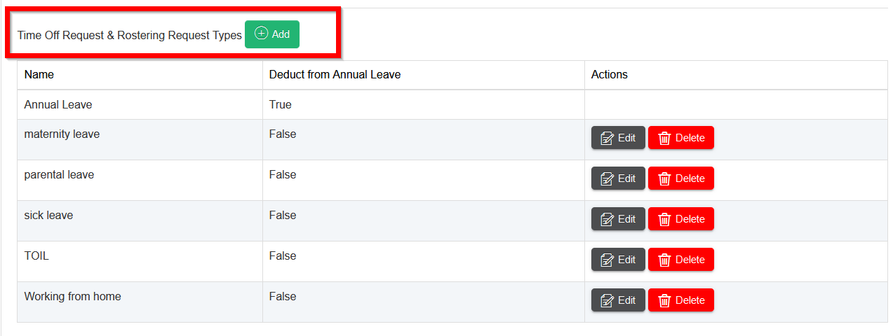 The new leave type can now be seen in the Time-Off Request & Rostering Request Types section.