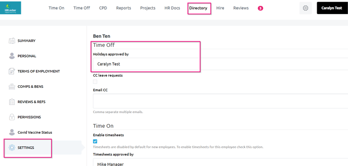 - Find and click on the name of the employee whose holiday approver you want to change.