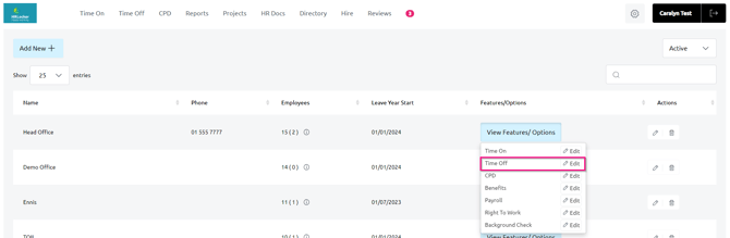 - Choose the Time Off option for the relevant office.
