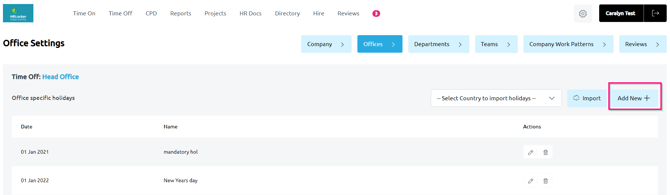 - Note that this process will need to be repeated for each individual office where the holiday applies.