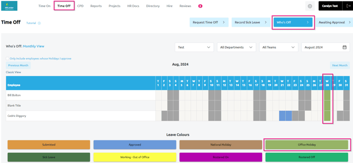- The Leave will be visible in the Who's Off calendar