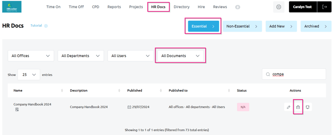 - From the dropdown menu, select All Documents to display all published HRDocs.