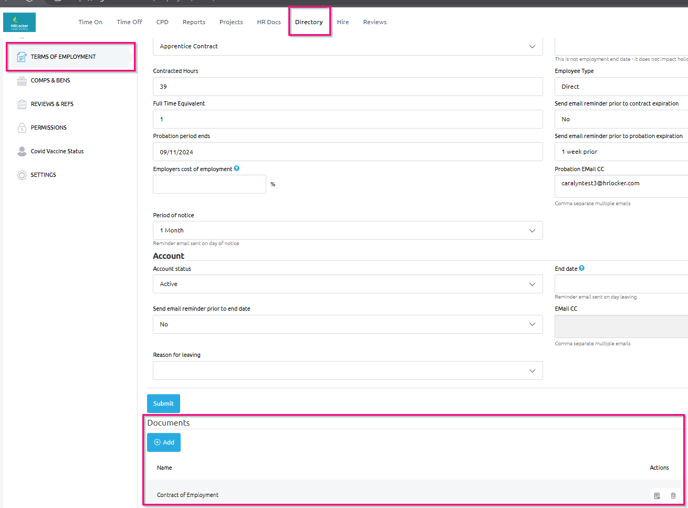 Here any 'essential' documents will be pre-assigned, but if they need to add a document that is not pre-assigned, the manager or employee can click 'Add Document'