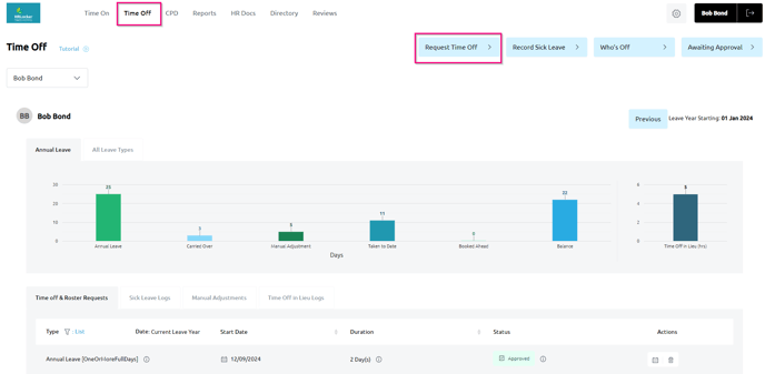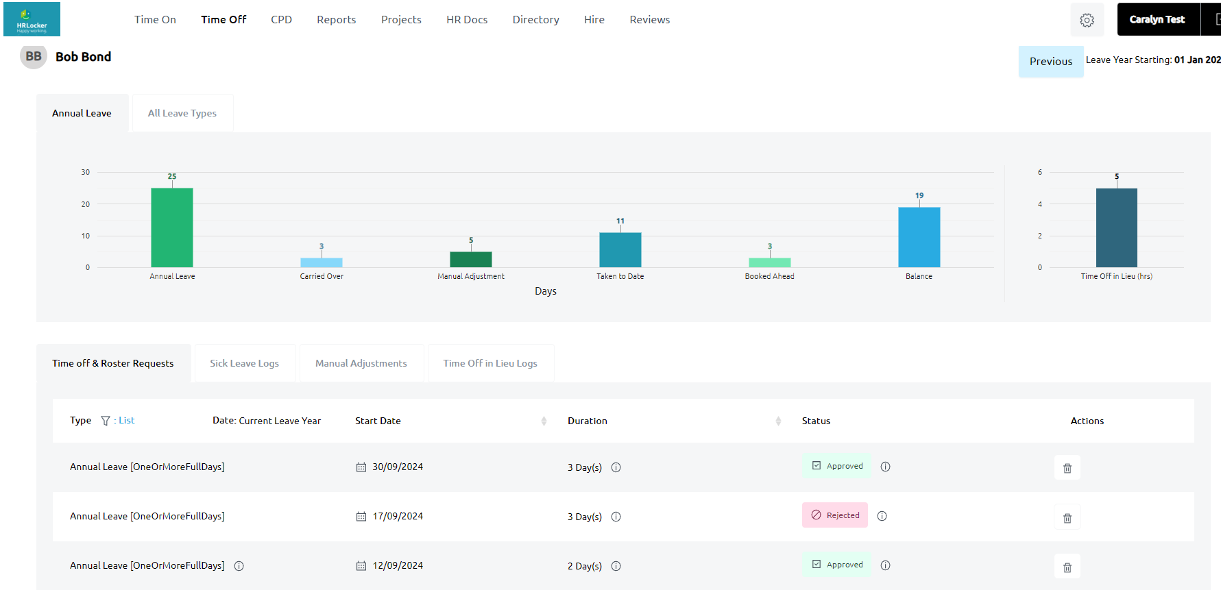 The Time Off logs will update the submitted leave to Approved or Rejected