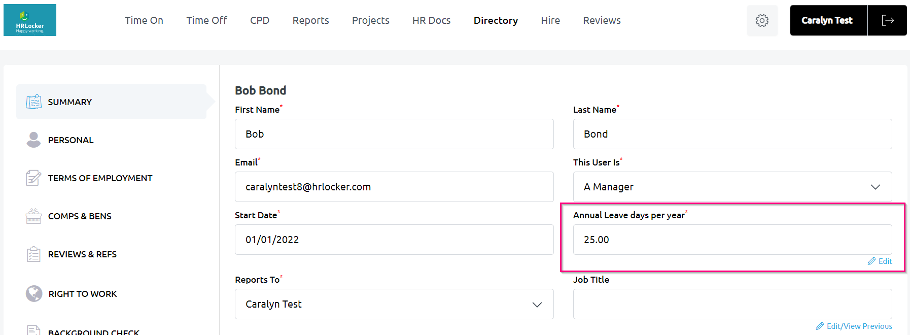 Note: To change the allocation for the new leave year you will need to wait until the start of the new year. You can edit an employee's annual leave allocation starting from the first day of the new annual leave year.