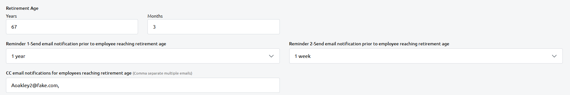 Within the office settings, administrators can configure two automated email reminders to notify stakeholders before an employee’s retirement.