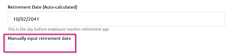 Managers with directory permissions or administrators can enable manual entry by selecting the "Manually enter retirement date" option.