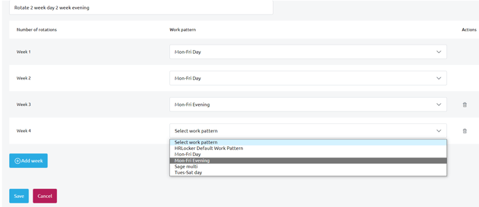 HRLocker Admins and managers with settings permissions can create Work pattern rotations